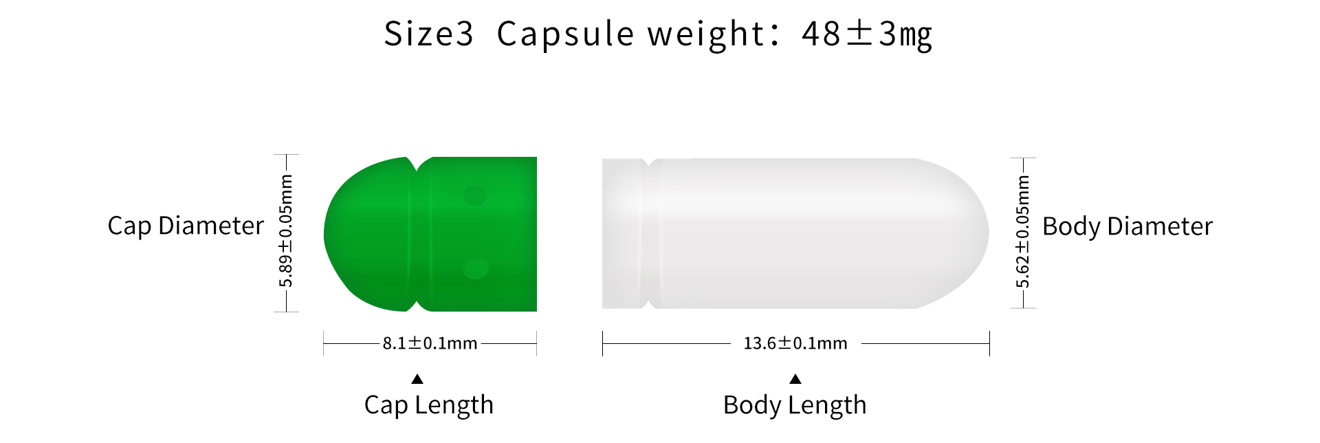 Empty gelatin capsule shells have advantages of efficient taste masking, wide range of biologic applications, modest appearance and convenience for swallowing. These size 3 empty gelatin capsules are often served as pharmaceutical excipients and disintegrated and absorbed mainly at stomach.